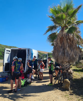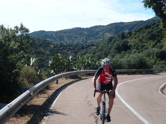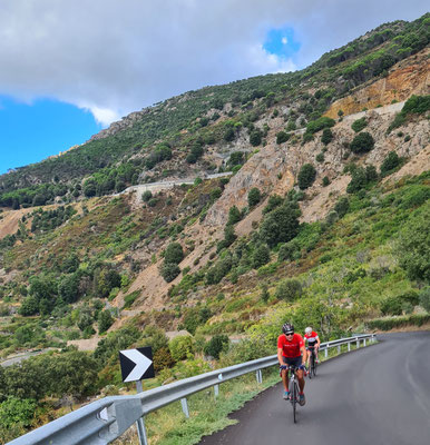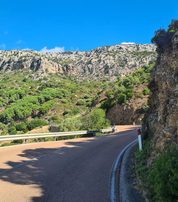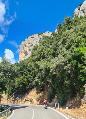 Am Samstag, also am 9. Tag brechen wir auf, um über das Supramonte wieder Richtung Olbia zu radeln. Da hier nochmals 185 Kilometer zurückzulegen sind und der Rückflug am Sonntagnachmittag ist, gibt es nach 3/4 der Strecke die letzte Übernachtung.
